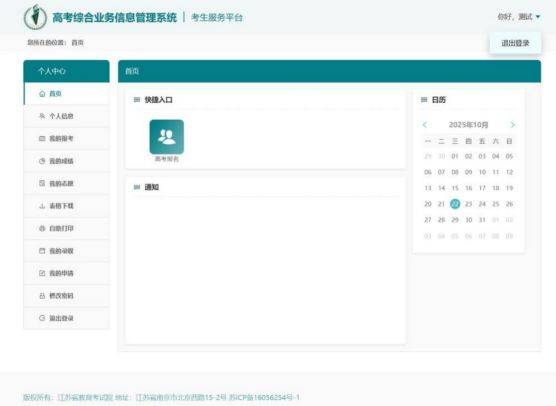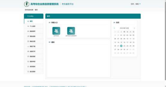 考生登录成功后,可以从【首页】的快捷入口【高考报名】进入考试报名页面。