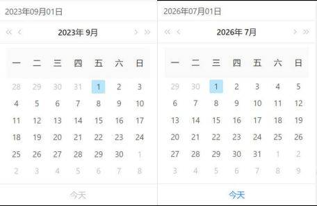【时间】 日历展示 1 个月的日期,可按年【>>】、月【>】切换,分别确定简历起始日期。
