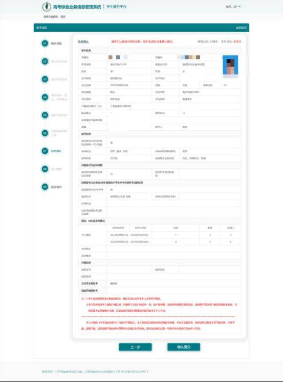 页面置为灰色的输入框不可修改,包括考生的姓名、证件类型、证件号码、