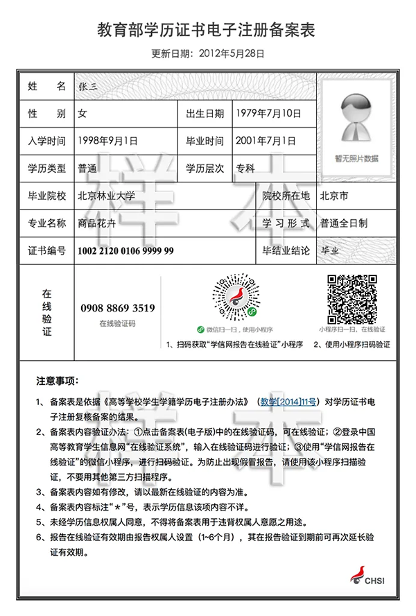 1.《教育部学历证书电子注册备案表》