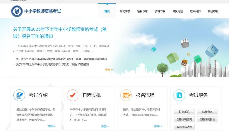 中小学教师资格考试网http://ntce.neea.edu.cn