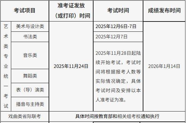 考试时间:全市统考从2025年11月28日起开始进行,各科类具体考试时间及要求以考生准考证为准。