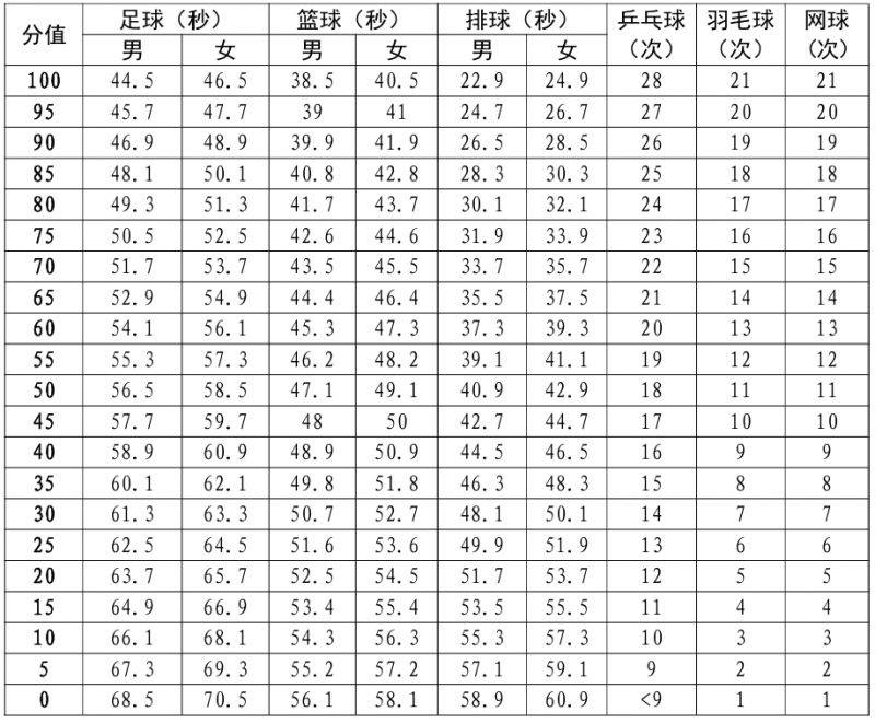 以上每类项目考试满分按100分计,三类项目考试成绩的平均分计为现场统一考试成绩,按0.36的权重(36分)计入初中毕业生升学体育考试总成绩。各考试项目规则及评分标准另行印发。