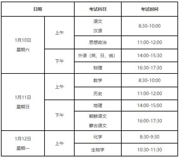 语文(含民族语文、汉语)、数学、外语(含英、日、俄)、思想政治、历史、地理、物理、化学、生物学共9科;普通高中二年级在籍学生新开考语文、数学、外语(含英、日、俄)、思想政治和物理5个考试科目。