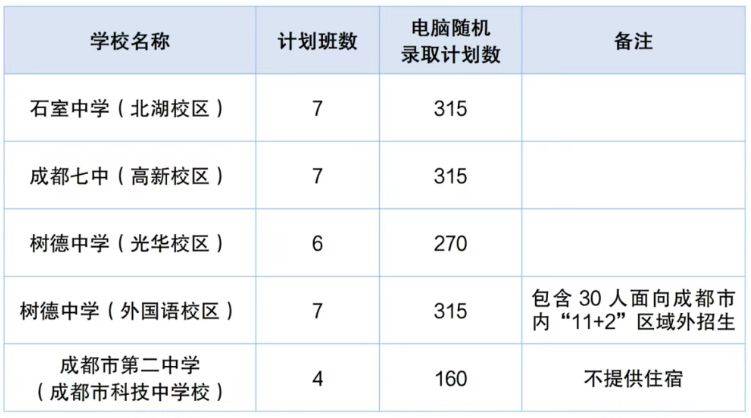 石室中学(北湖校区)、成都七中(高新校区)、树德中学(光华校区)、树德中学(外国语校区)报名条件: