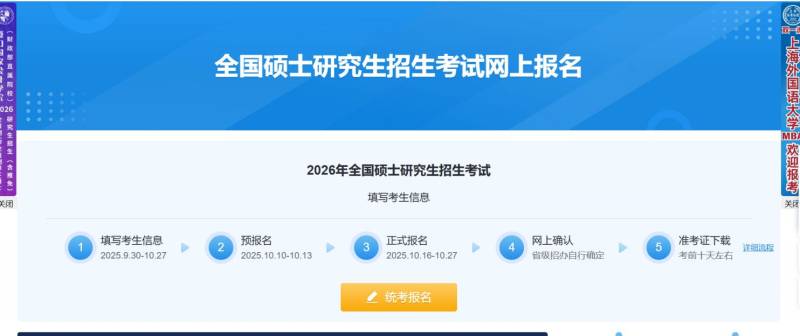 2026年全国硕士研究生招生初试时间为2025年12月20日至21日。网上报名时间为2025年10月16日至10月27日(网上预报名时间为2025年10月10日至10月13日,相关工作安排由各省级教育招生考试机构确定并公布),每日9:00—22:00。网上报名结束后,各省级教育招生考试机构将组织网上确认工作,对考生报名信息进行审核。所有考生均须在规定时间内参加网上报名和网上确认,逾期不再补办。