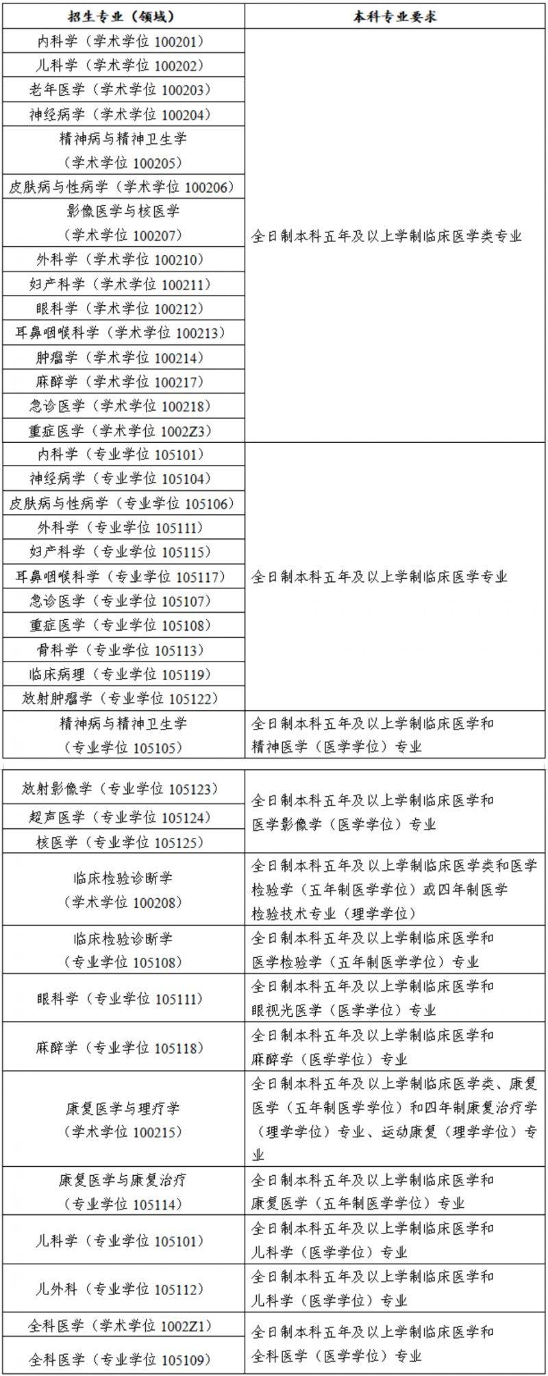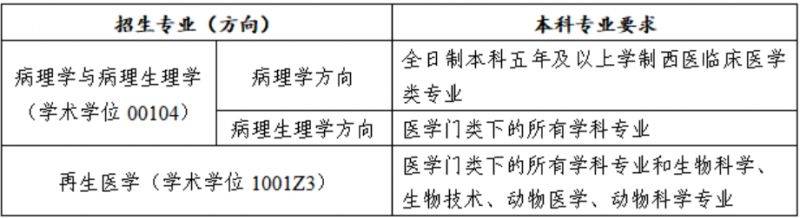 报考基础医学专业的考生,其本科专业必须是医学门类下的所有学科专业。其中,部分基础医学专业(方向)仅限相关对应的本科专业的考生报考,具体见下表: