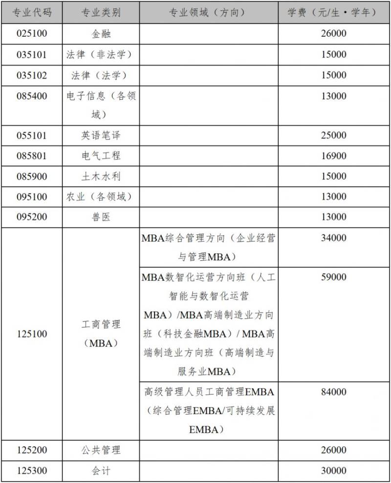 1.全日制学术学位硕士学费标准:8000元/生•学年