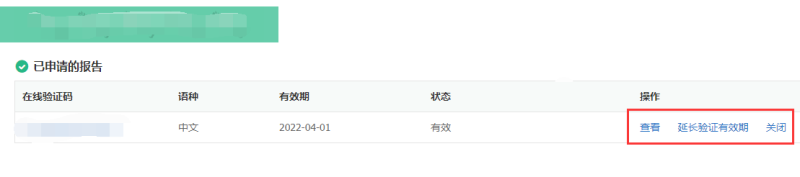 2. 点击申请即可生成相应报告,然后直接查看即可。对于已经申请过的但目前已过期的报告,可以通过设置延长验证有限期来查看,此处需要注意,在线验证报告有效期为6个月。