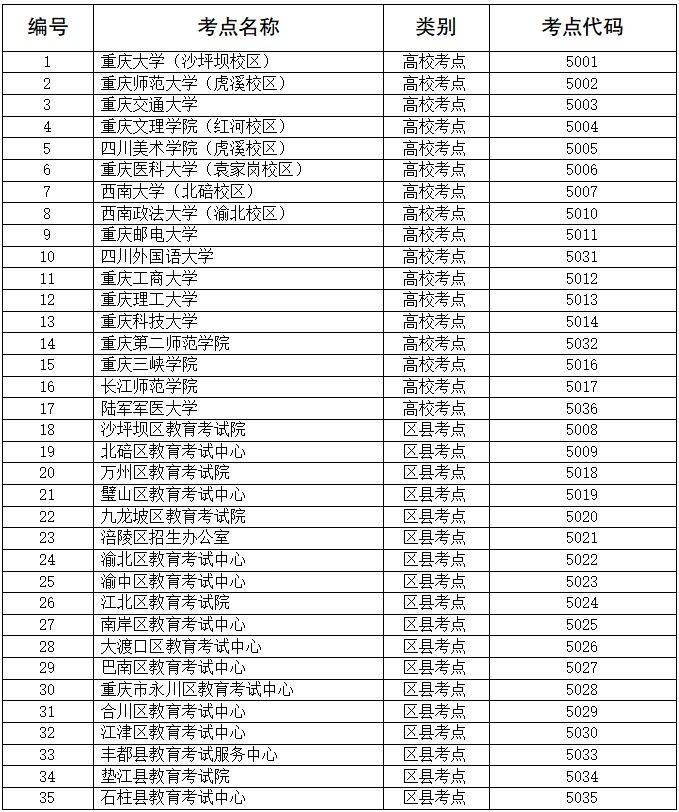 2.报考西南大学美术与书法专业(专业代码135600)、设计专业(专业代码135700)的考生须选择西南大学考点。
