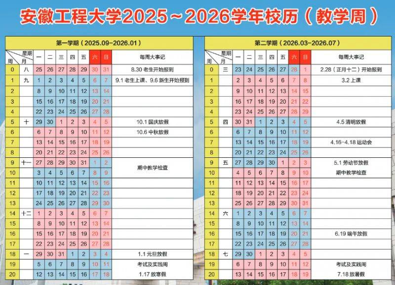 【2026安徽工程大学寒假放假时间安排】 寒假开始时间:2026年1月17日至2月27日(2月16日除夕)。 报到时间:2026年2月28日,3月2日起正式上课 》》》推荐阅读:芜湖市2026大中小学寒假放假时间(点击阅读查看)