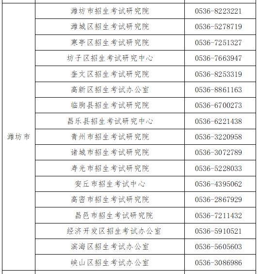 (四)潍坊各地咨询电话