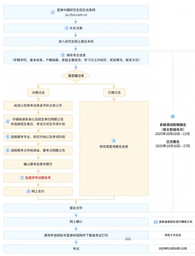 以下是研招网官方发布的26年考研报名流程图,大家可以作为参考: