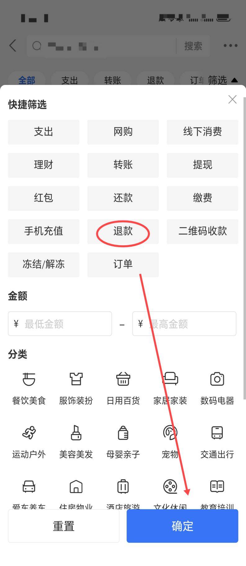 5. 上下滑动界面查看上述退费周期内支付宝退款记录;