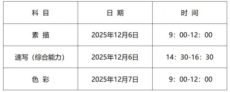 ⑴美术与设计类专业统考总分为300分,包括素描(100分)、色彩(100分)、速写(综合能力)(100分)三个科目。