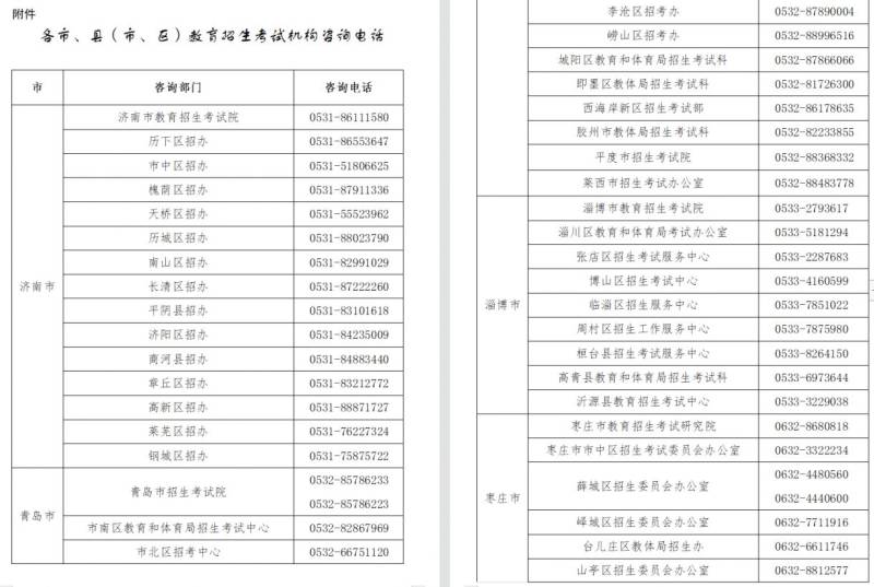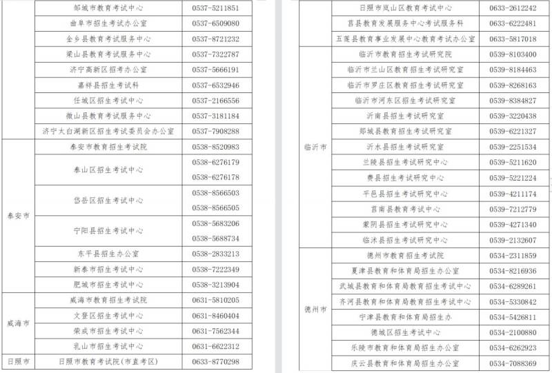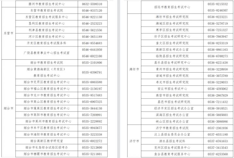 山东省2025年成人高考各市教育招生考试机构联系方式