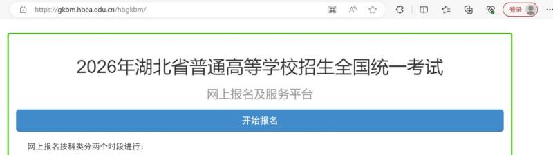 点击进入:2026年湖北省普通高等学校招生全国统一考试网上报名及服务平台