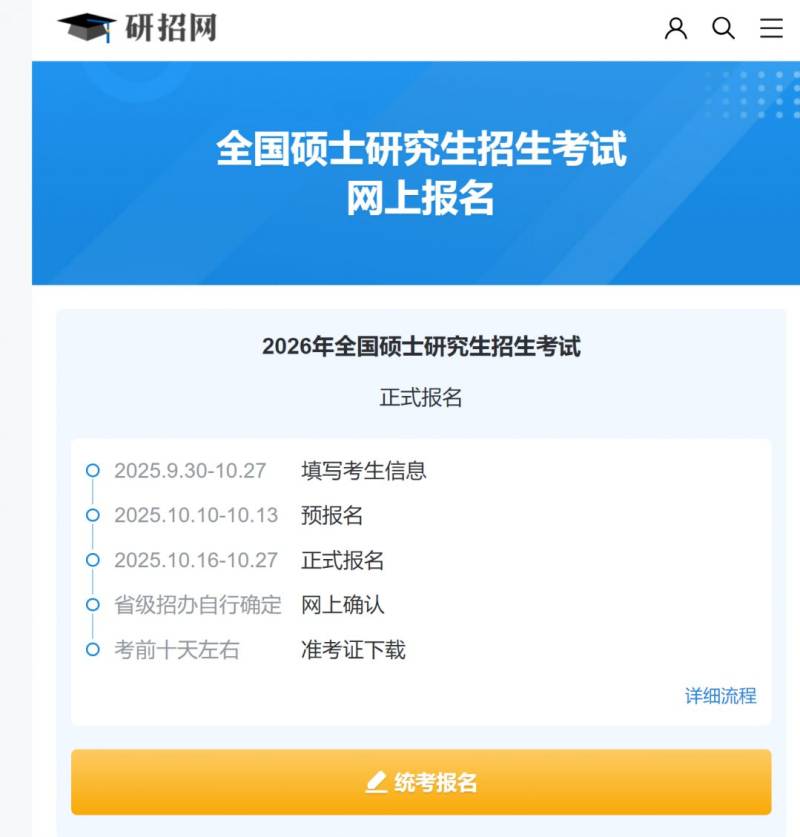 1.报名时间:2025年10月10日-13日预报名,10月16日-27日正式报名,每天9:00-22:00。报名期间,考生可自行修改网上报名信息或重新填报报名信息。考生须在上述规定时间内上网报名,逾期不能补报且不得修改报名信息。
