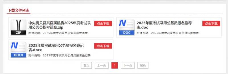 第三步:下载中央机关及其直属机构2025年度考试录用公务员招考简章.zip,解压缩后打开