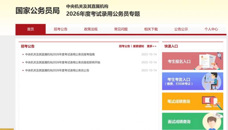中央机关及其直属机构2025年度考试录用公务员专题网站(中央机关及其直属机构2026年度考试录用公务员专题)