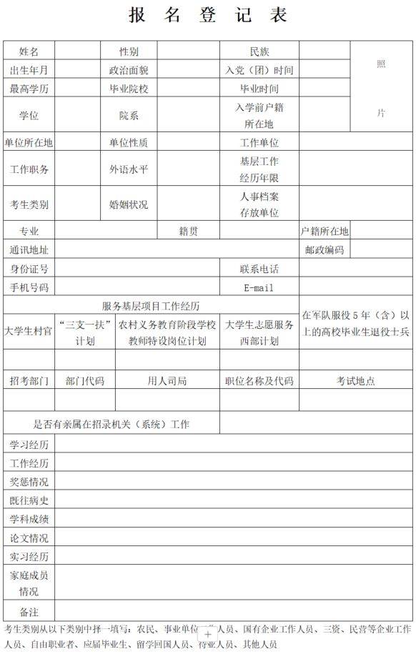 2026年度考试录用公务员报名登记表