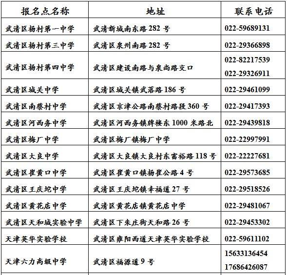 (二)武清区中职应届毕业生、往届毕业生、同等学力考生的报名单位选择及确认点为: