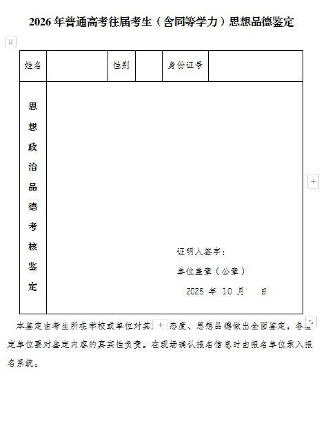 2.2026年普通高考往届考生(含同等学力)思想品德鉴定
