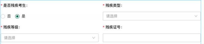 如果“是否残疾”选择“是”,需要填写相关信息。