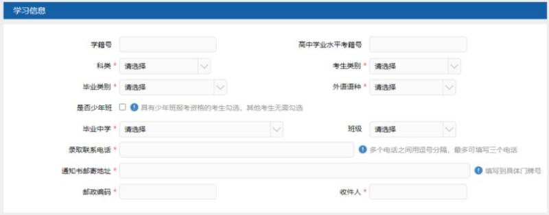 录取联系电话(最多可填写三个电话,录取结束前不能更改)、通知书邮寄地址、邮政编码、收件人等项内容务必录入准确。