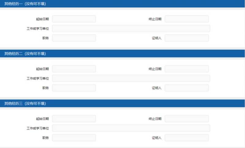 其他经历为非必填项,往届生需如实填写复读或自学经历,不限于填写一组;填写以上经历需连续至2026年7月,不能重叠或间断。