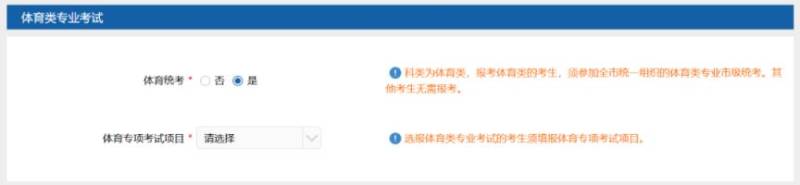 选报体育类专业考试的考生须填报体育专项考试项目,包括田径、游泳、球类、跆拳道、武术、健美操等20个专项。(仅体育单招的考生无需选择体育类专业考试)。按照教育部、国家体育总局相关规定,普通高等学校运动训练、武术与民族传统体育专业实行单独招生考试(体育单招)。报考体育单招的考生必须参加我市普通高考报名。