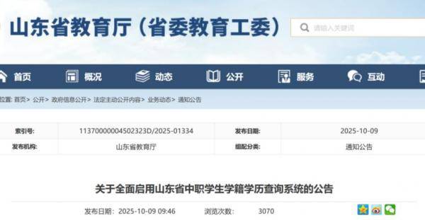为深化教育领域“高效办成一件事”改革,进一步便利人民群众、为基层减负,我们组织开发了山东省中职学生学籍学历查询系统,通过山东省教育厅官网“服务”板块(网址:https://zyjy.sdei.edu.cn/xjxlq/)面向社会开放。该系统支持自2012年9月起就读中职学校学生的学籍学历在线查询,用人单位等可通过系统在线验证学籍学历真伪。山东省中等职业教育学历在线验证报告与山东省中等职业教育学历证明(认定)书具有同等效力。