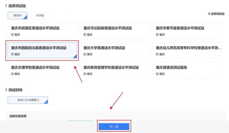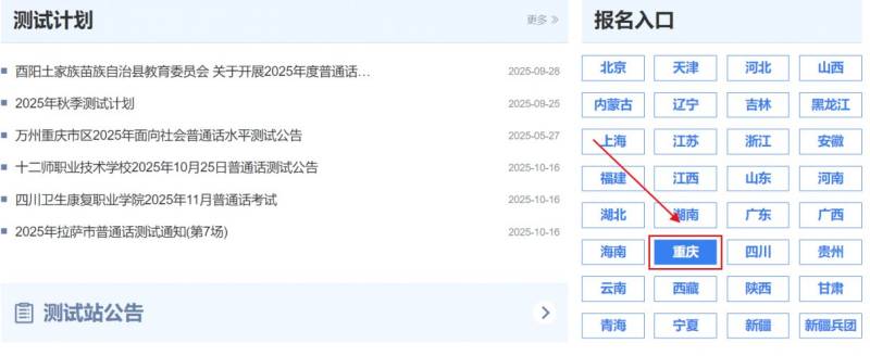 进入后,在报名入口点击“重庆”,选择对应的测试站即可