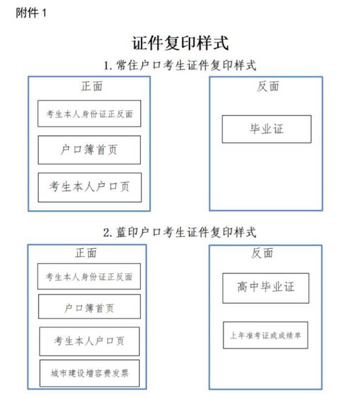 本市常住户口同等学力报考者,须持本人户口簿、身份证的原件和复印件(复印样式见附件1)、初中毕业证(我市证书须为2023年及以前取得,外省证书须为2020年及以前取得)的原件和复印件、9门我市统一组织的普通高中学业水平考试成绩证明(由天津招考资讯网申请)、所在学校或单位(无学校或单位的由所属的村(街)居委会或其上级部门)出具的报考者政治态度、思想品德鉴定(附件2)或户籍所属派出所出具的无犯罪记录证明(津心办-公安服务端口可申请办理),各鉴定单位要对鉴定内容的真实性负责。