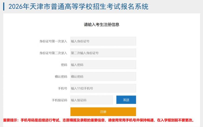 2026年天津市普通高等学校招生考试报名系统入口:(http://111.31.213.70:9301/tjgk/sturegister.jsp)
