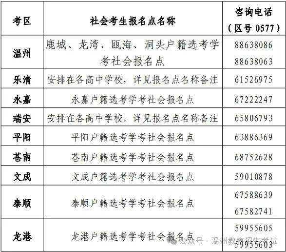 温州市区社会考生根据户籍所在地选择相应的市区社会考生报名点。其中市局直属普通高中段学校市区户籍往届生及随迁子女往届生也按上述要求选择,注意与高考报名点选择有所不同。