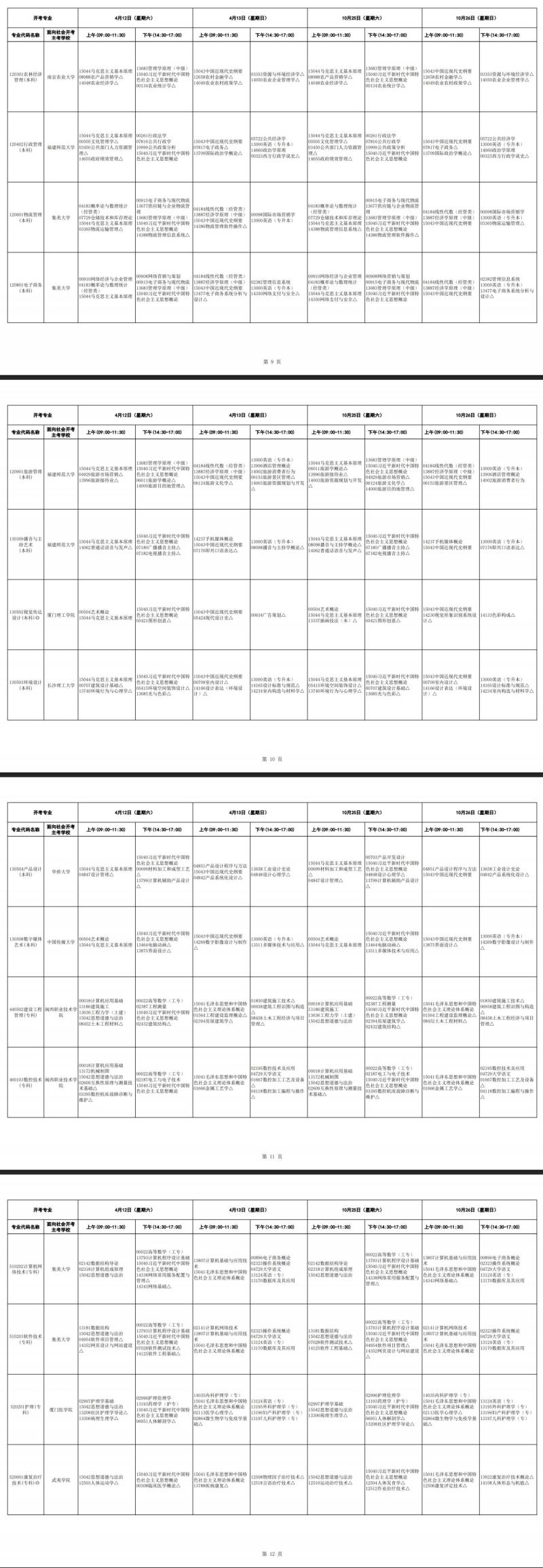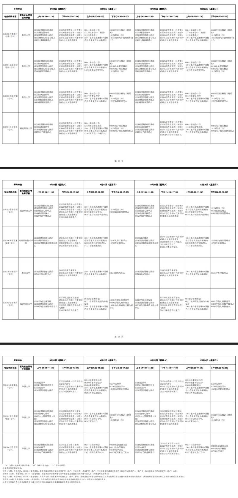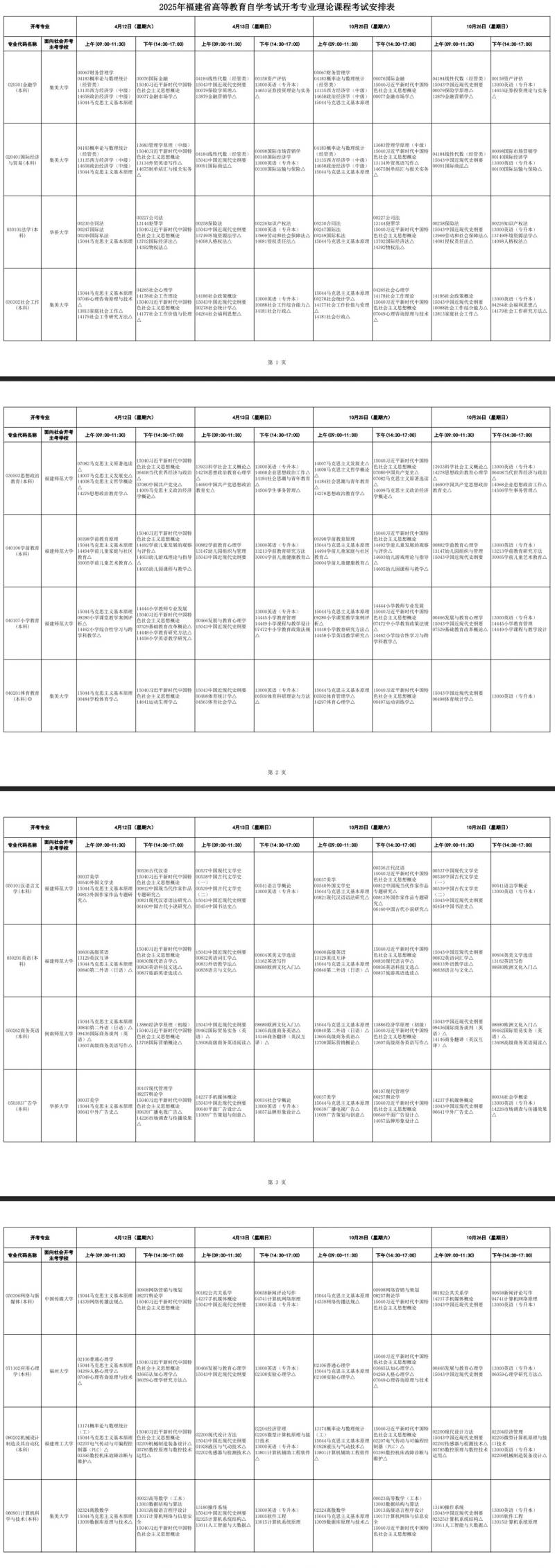 2025年福建省高等教育自学考试开考专业理论课程考试安排表