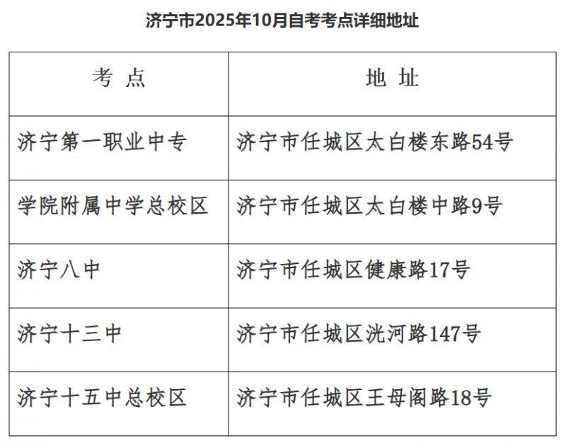 2025年10月全国自考于10月25日-26日进行。本次考试,全市设济宁第一职业中专、济宁学院附属中学总校区、济宁八中、济宁十三中、济宁十五中总校区5个考点。