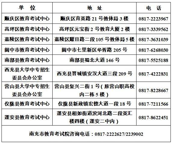 具体报名要求详询当地县(市、区)招考机构(联系方式附后)。