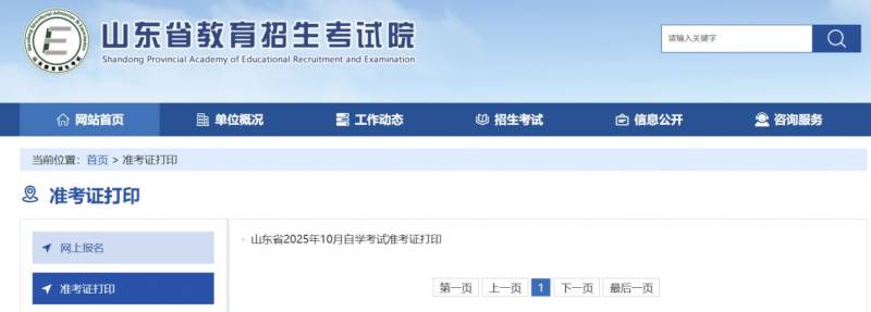 考生可于2025年10月20日至26日(每天8:30至17:00)登录山东省教育招生考试院官网(https://www.sdzk.cn)打印准考证。请仔细核对准考证上的个人信息、考试时间、考点地址等信息,认真阅读《考生须知》等内容。