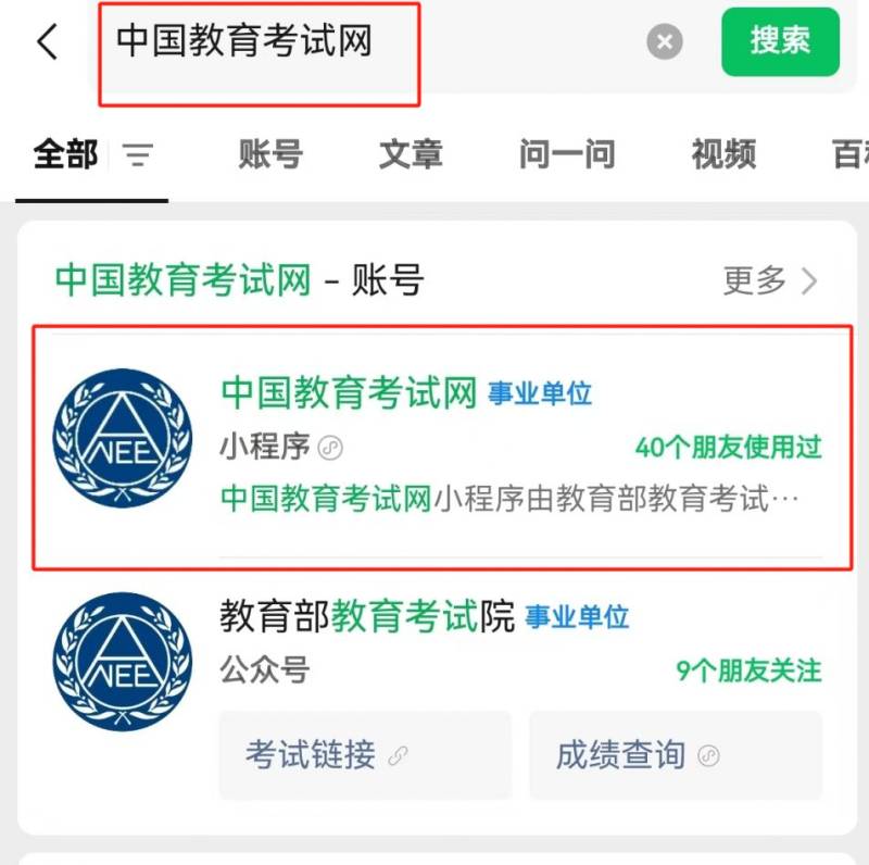 搜索中国教育考试网小程序,点成绩查询——全国计算机等级考试(NCRE)即可查询