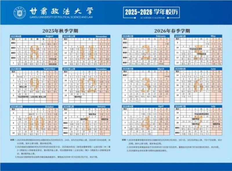 2026年春孝学期在校学生注册时间为2026年2月28日、3月1日,3月2日开始上课,7月17日结束,共计20周。其中上课18周,期末考试2周。