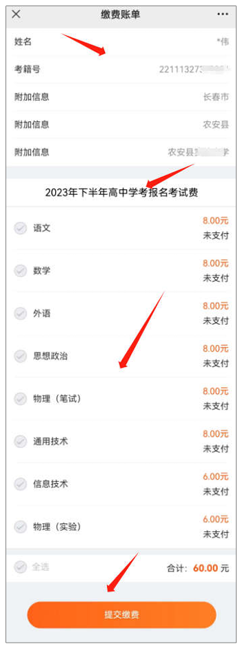 吉林省普通高中学业水平合格性考试网上缴费说明