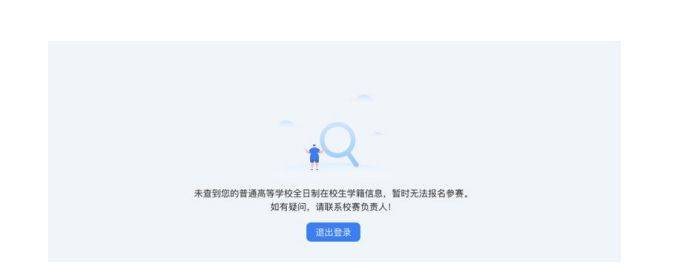 5.若出现“未查到您的普通高等学校全日制在校生学籍信息,暂时无法报名参赛”的信息,可以联系校赛负责人进行咨询,确认是否为全日制在校生、学信网账号是否有学籍信息等。