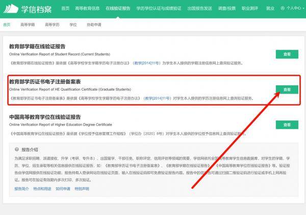 第五步:若显示暂时未申请该学历电子注册备案表,点击申请即可查看。有历史申请报告记录,请点击延长验证有效期即可,请选择有效期为6个月。
