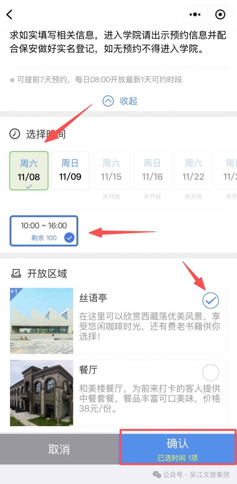 选择日期、参观时间段、开放区域