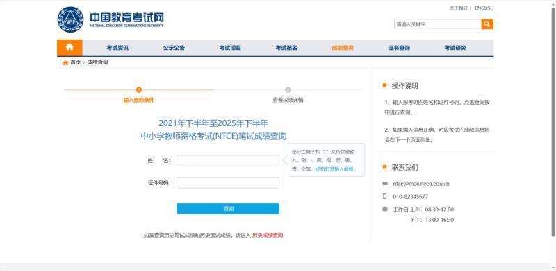 查询官网:中小学教师资格考试(NTCE) 成绩查询 - 中国教育考试网