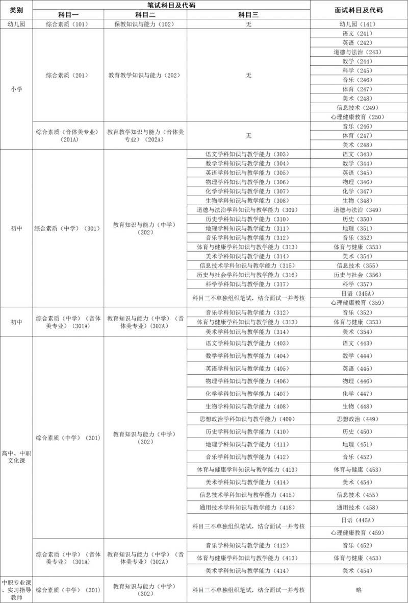 一、江苏省中小学教师资格考试笔试与面试科目对应一览表