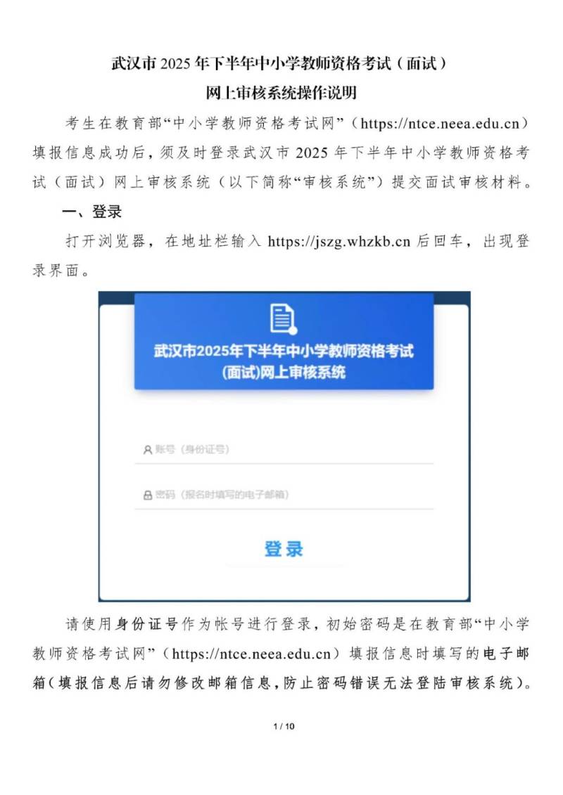 武汉市2025年下半年中小学教师资格考试(面试)网上审核操作说明