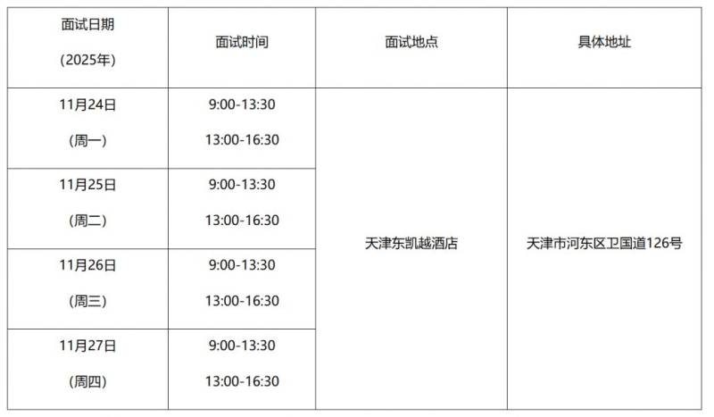 注:面试环节只需参加一场即可,如多次参加则以首次面试成绩为准。